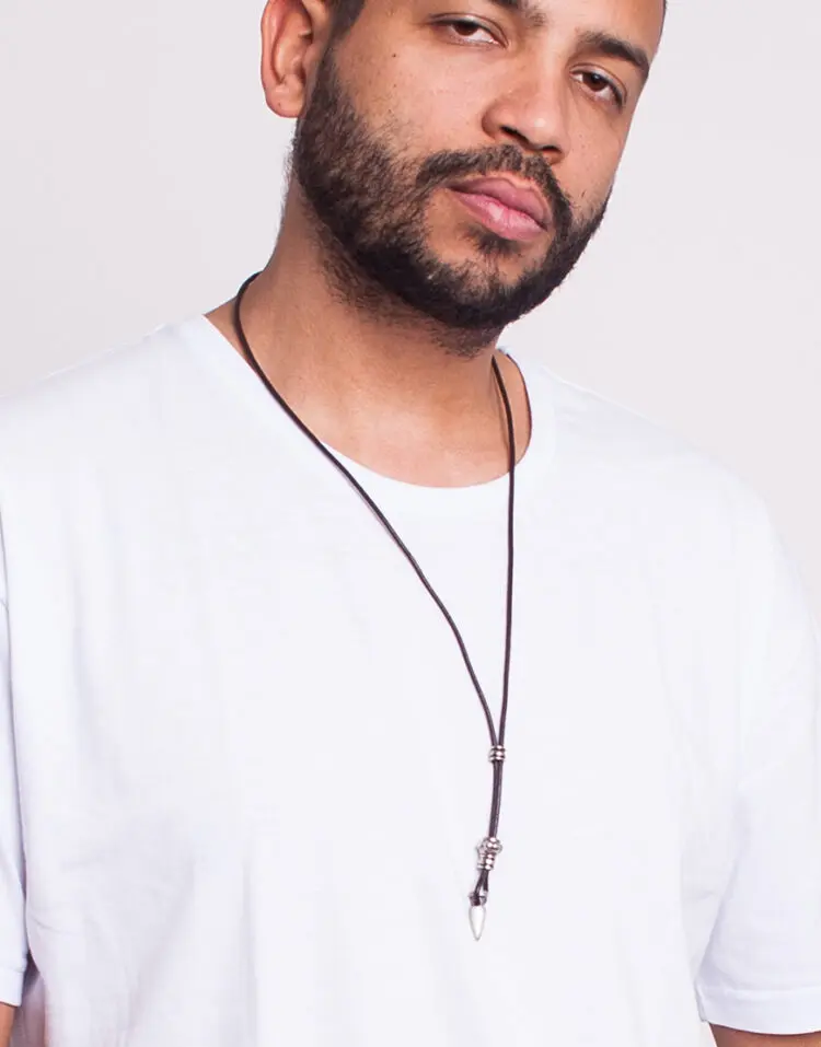 Possui pingente de pino e fecho lagosta. Cor do cordão: Marrom Marca: Loopy